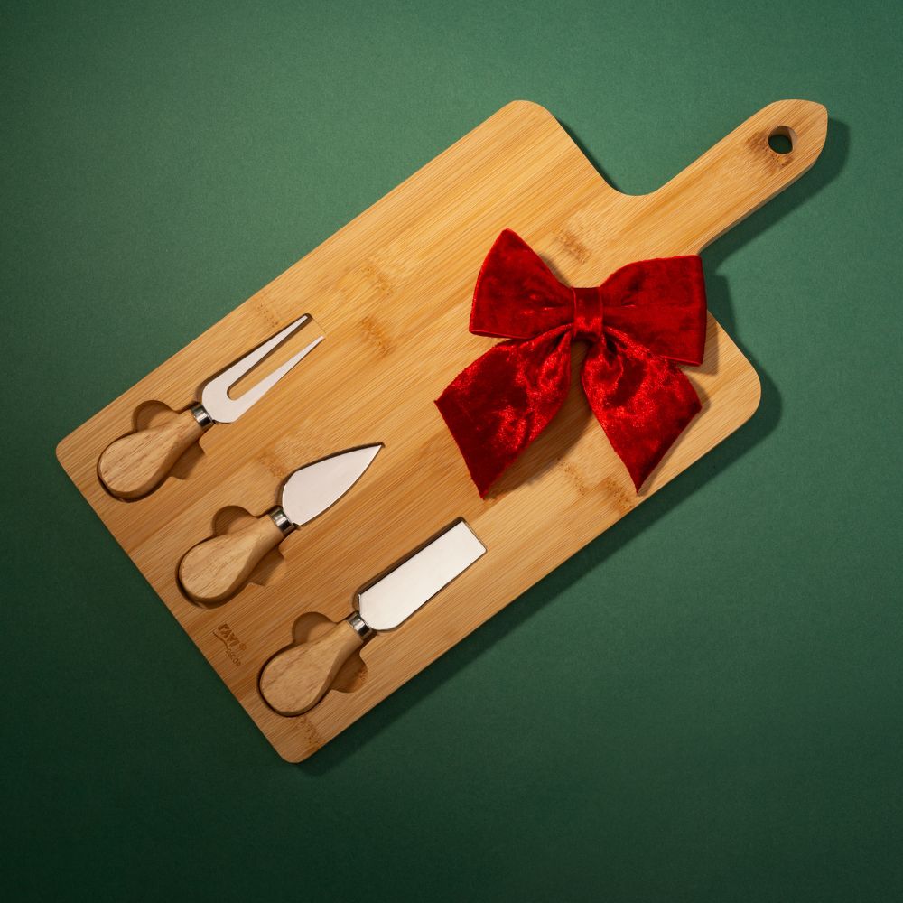 Zestaw do serów wykonany z naturalnego drewna bambusowego to idealny wybór dla miłośników serów i stylowego serwowania przekąsek. W komplecie znajdują się nożyki i widelczyk ze stali nierdzewnej, które ułatwiają krojenie, nakładanie i podawanie różnych rodzajów serów.