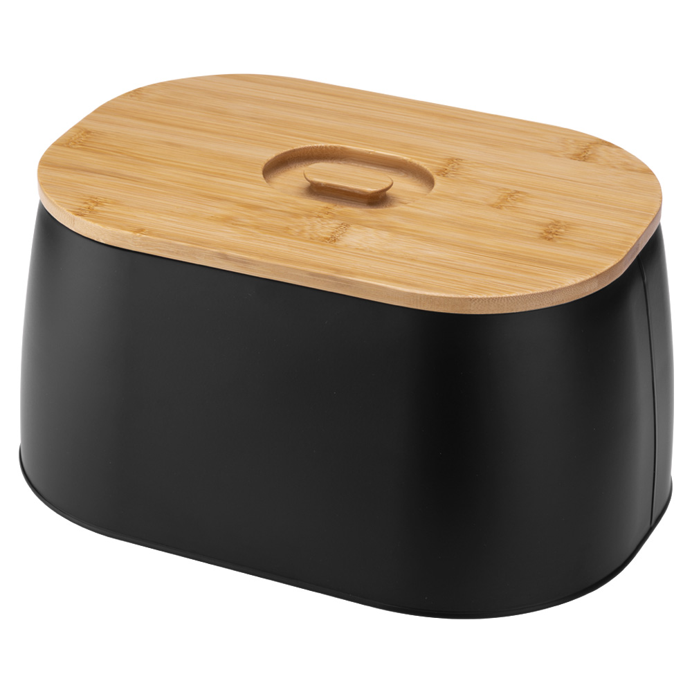 Elegancki i funkcjonalny chlebak BREGO w kolorze czarnym to praktyczne rozwiązanie do przechowywania pieczywa w każdej kuchni. Wykonany z trwałej stali malowanej proszkowo w połączeniu z naturalnym drewnem bambusowym, łączy nowoczesny design z wysoką użytecznością.