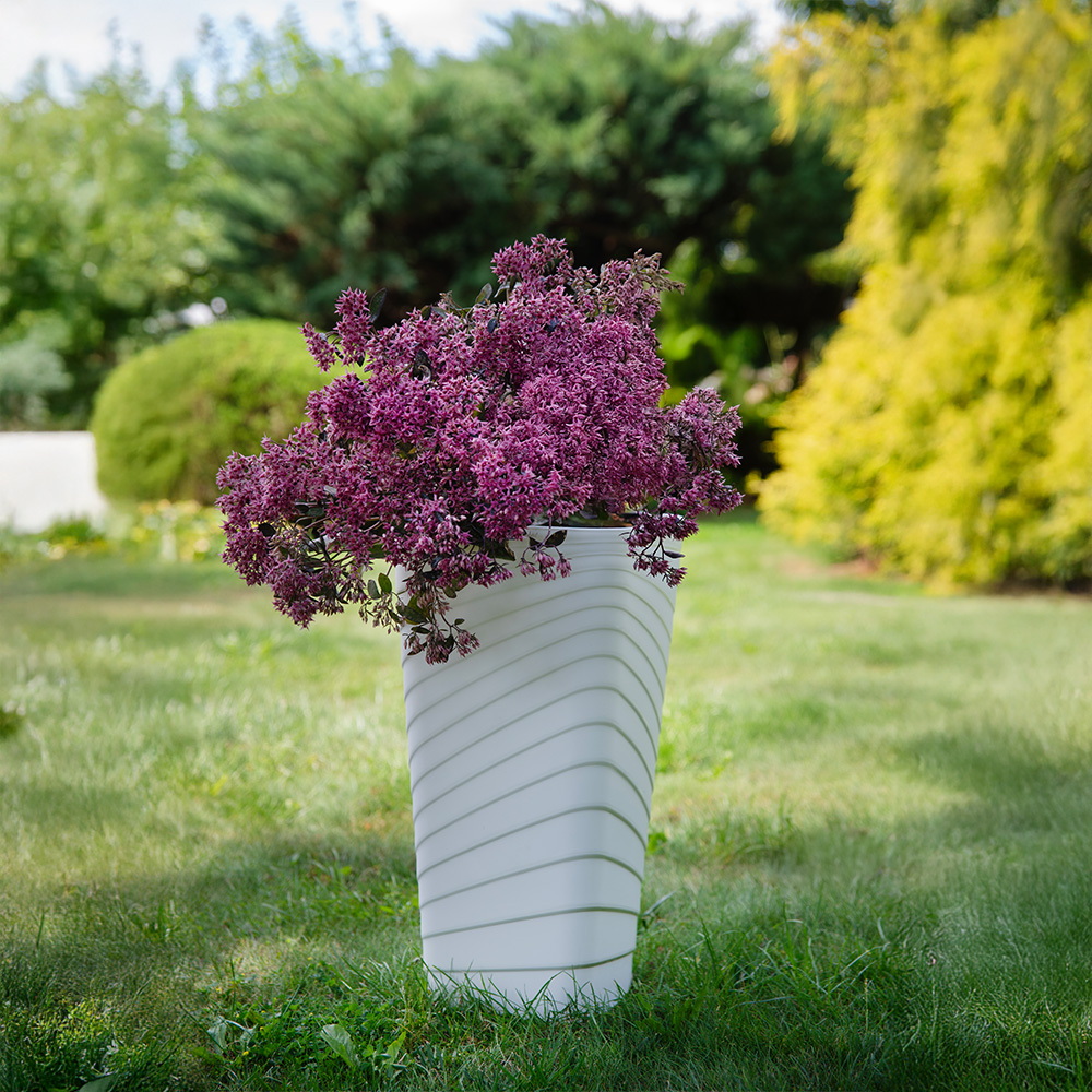 Dzięki podwyższonej formie i smukłym proporcjom (wysokość 46cm) doniczka doskonale eksponuje rośliny ozdobne, kwiaty, trawy czy niewielkie krzewy. Uniwersalny biały kolor sprawia, że świetnie wpasuje się zarówno w nowoczesne, minimalistyczne wnętrza, jak i klasyczne aranżacje balkonu, tarasu czy biura.