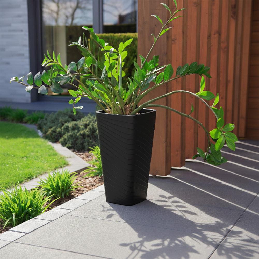 Nowoczesna doniczka kwadratowa TWISTA to doskonałe połączenie elegancji, funkcjonalności i trwałości. Wykonana z wysokiej jakości tworzywa sztucznego, wyróżnia się minimalistycznym designem i uniwersalnym czarnym kolorem, który świetnie komponuje się zarówno z nowoczesnymi, jak i klasycznymi aranżacjami.