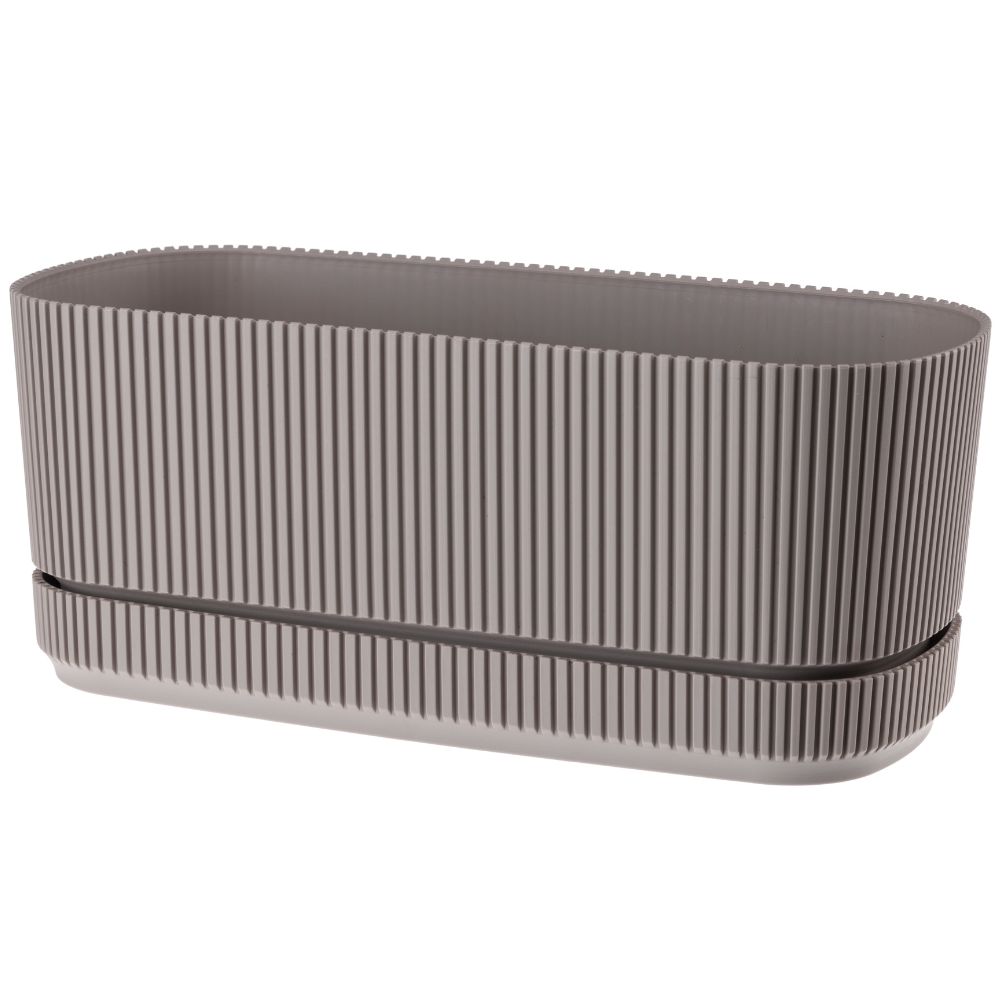 W zestawie znajduje się dopasowana podstawka z praktycznymi wypustkami, które stabilnie łączą oba elementy, zapewniając bezpieczeństwo i wygodę użytkowania. Doniczka w ciemnym beżu to uniwersalny wybór, który idealnie komponuje się z zielenią roślin i pasuje do każdego wystroju.