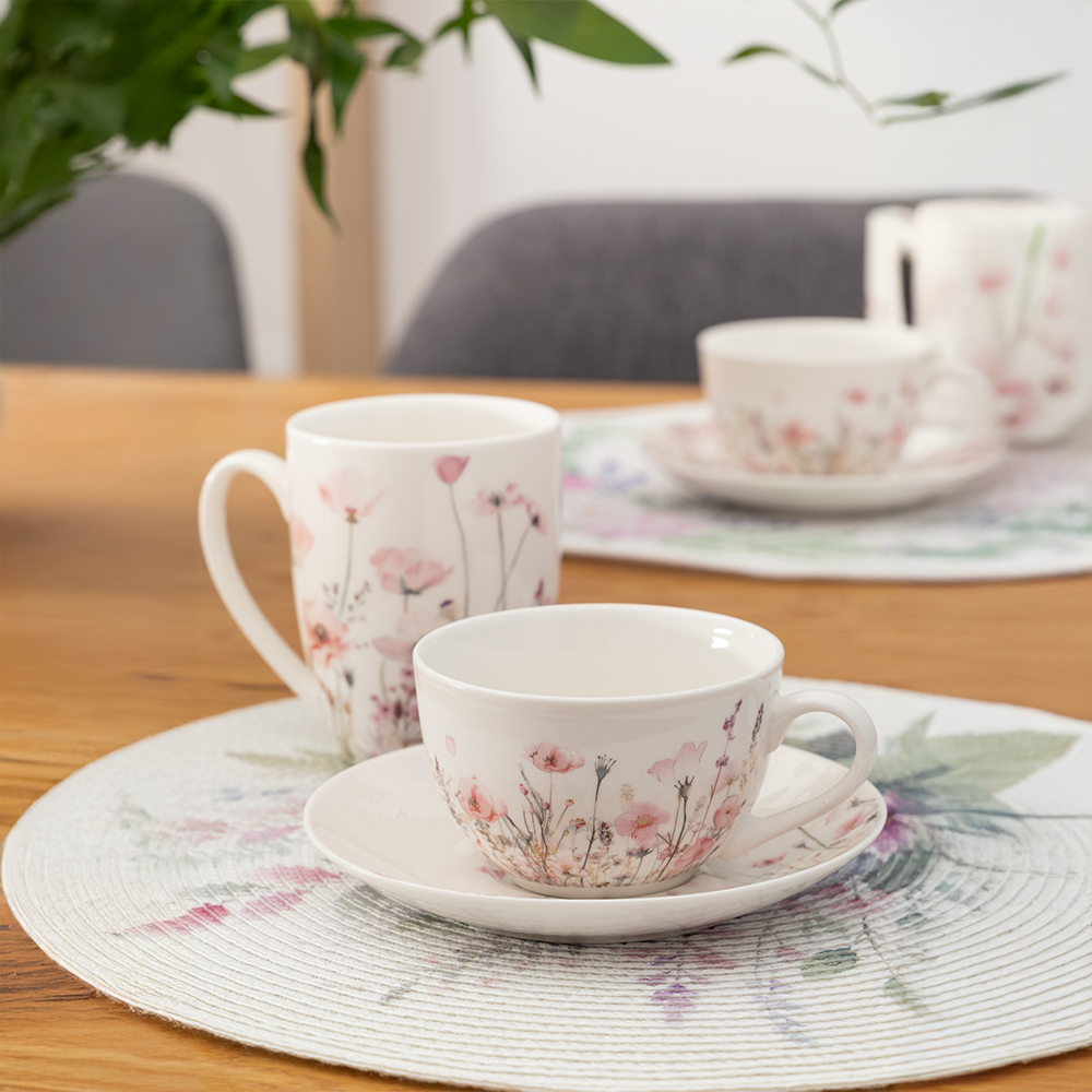 Filiżanka PRADO to piękny element zastawy, który wprowadzi do wnętrza subtelny, kwiatowy akcent oraz sprawdzi się jako gustowny pomysł na prezent.