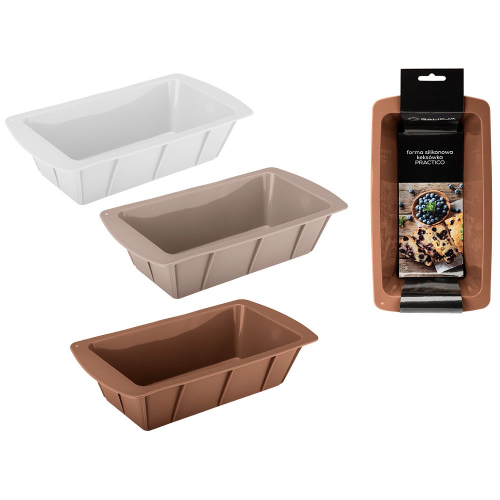 Silikonowa forma do pieczenia linii PRACTICO w kształcie keksówki to praktyczne narzędzie, które ułatwia przygotowanie domowych wypieków. Wykonana z wysokiej jakości silikonu, jest odporna na temperatury do 230°C, dzięki czemu doskonale nadaje się do pieczenia keksów, chleba i innych słodkich lub wytrawnych wypieków. Forma dostępna jest w trzech eleganckich kolorach: kremowym, szarym i różowym. Jej elastyczna konstrukcja sprawia, że wypieki łatwo wyjmują się z formy, a możliwość mycia w zmywarce zapewnia wygodę użytkowania. Forma ma wymiary 25x13,5x6 cm, co czyni ją idealną do przygotowywania keksów o standardowej wielkości.