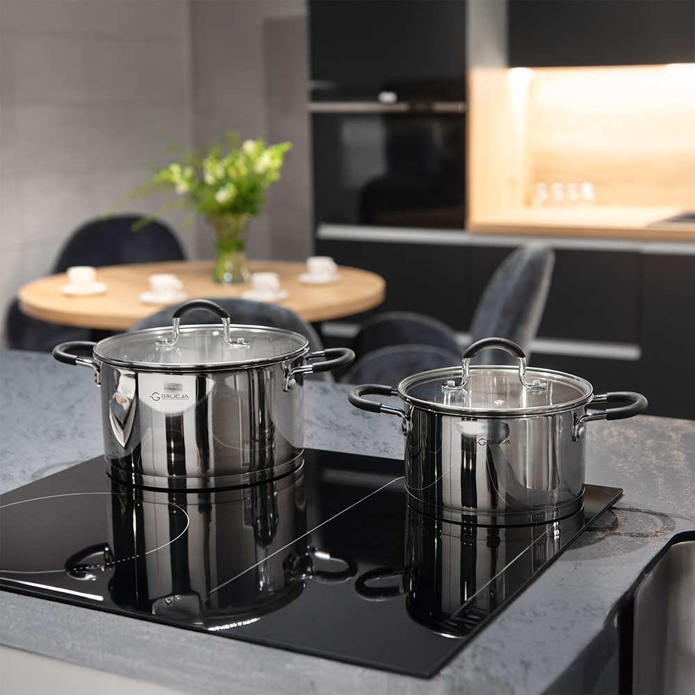 Szklana pokrywa umożliwia kontrolę gotowania bez utraty ciepła, a silikonowe uchwyty pozostają chłodne, zapewniając wygodę i bezpieczeństwo. Garnek jest kompatybilny ze wszystkimi rodzajami kuchenek, w tym indukcyjnymi, i nadaje się do mycia w zmywarce.
