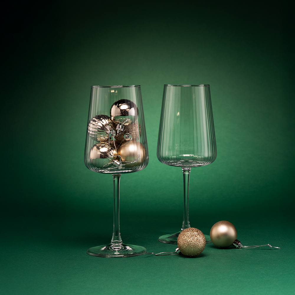 Zestaw zawiera 2 kieliszki o pojemności 540 ml, idealne do wina, koktajli, soków czy wody. Kieliszki są trwałe, estetyczne i bezpieczne do mycia w zmywarce, co czyni je praktycznym wyborem na co dzień oraz podczas wyjątkowych okazji.