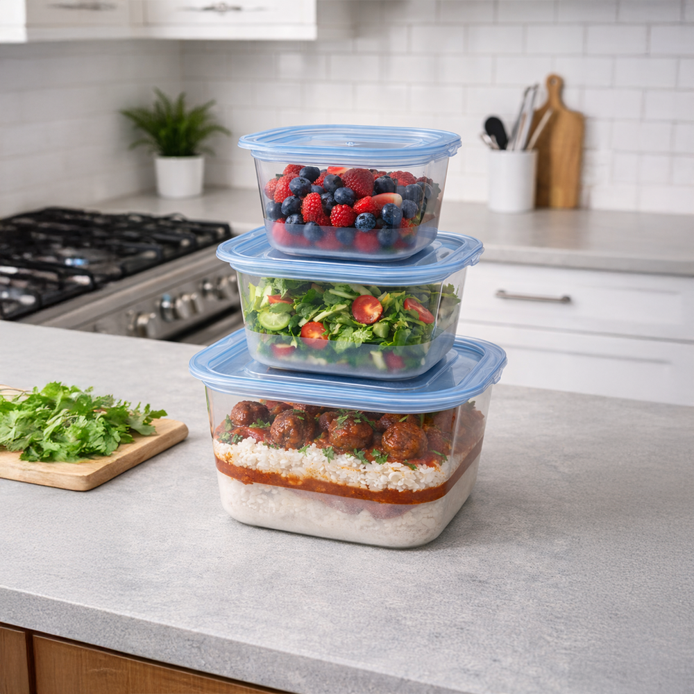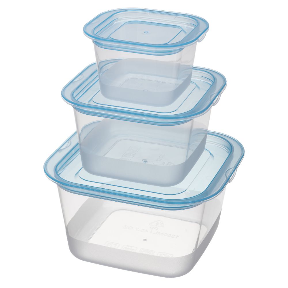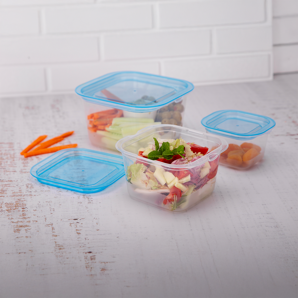 Kwadratowy kształt ułatwia przechowywanie i pozwala efektywnie wykorzystać miejsce w lodówce i szafkach. Trzy różne pojemności sprawiają, że zestaw jest niezwykle uniwersalny – idealny zarówno do przechowywania przekąsek, jak i większych porcji posiłków.