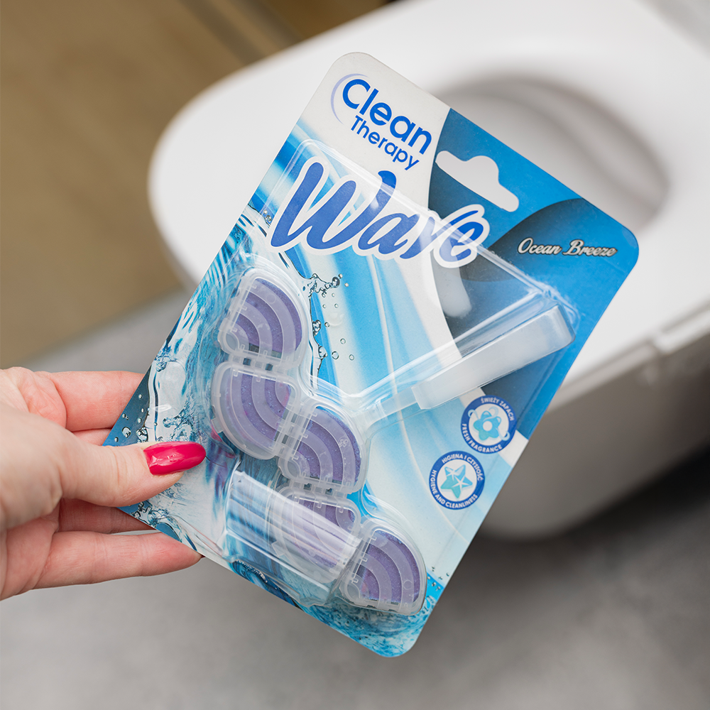 Kostka toaletowa Wave to wyjątkowe zestawienie walorów czyszczących i odświeżających z nowoczesnym designem, który kształtem nawiązuje do morskich fal. Produkt świetnie chroni przed osadzaniem się kamienia, po każdym spłukaniu tworzy aktywną, obfitą pianę oraz pozostawia przyjemny, długotrwały zapach. Ocean breeze to świeży i czysty aromat nadmorskiego powietrza.