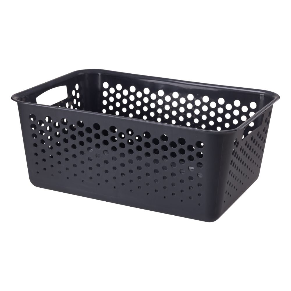 Lekka konstrukcja z wytrzymałego tworzywa sztucznego oraz liczne otwory wentylacyjne zapewniają dobrą cyrkulację powietrza. Wygodne uchwyty po bokach ułatwiają przenoszenie koszyka, a jego pojemna forma pozwala na przechowywanie wielu drobiazgów.