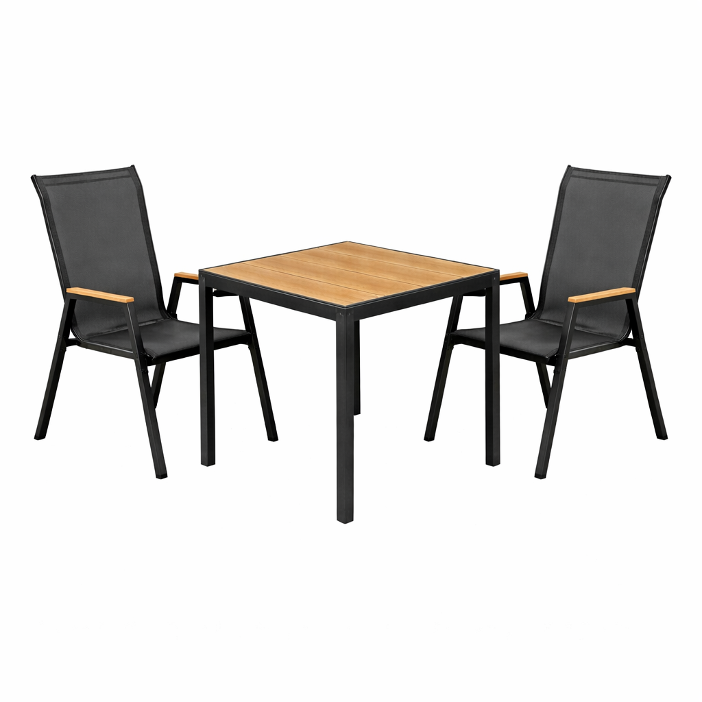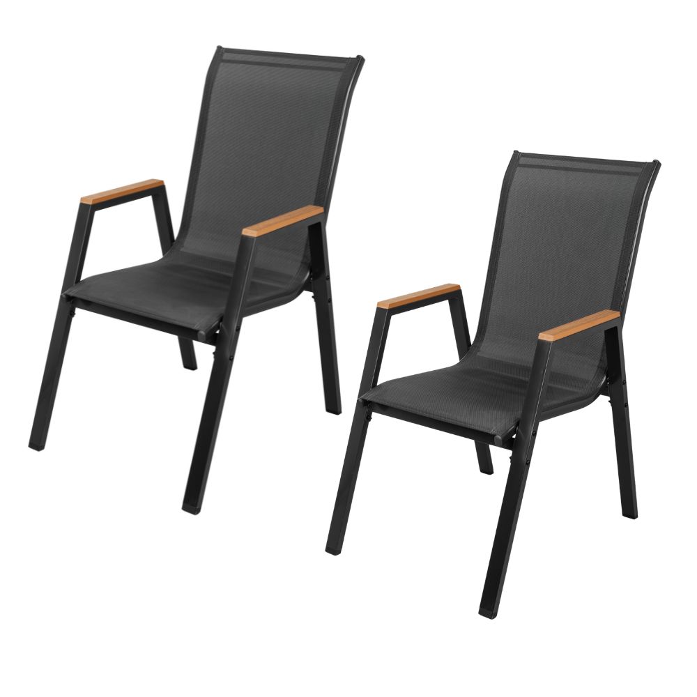 Minimalistyczny design w połączeniu z eleganckimi podłokietnikami w wykończeniu drewnopodobnym sprawia, że krzesła doskonale wpisują się w nowoczesne aranżacje przestrzeni zewnętrznych.