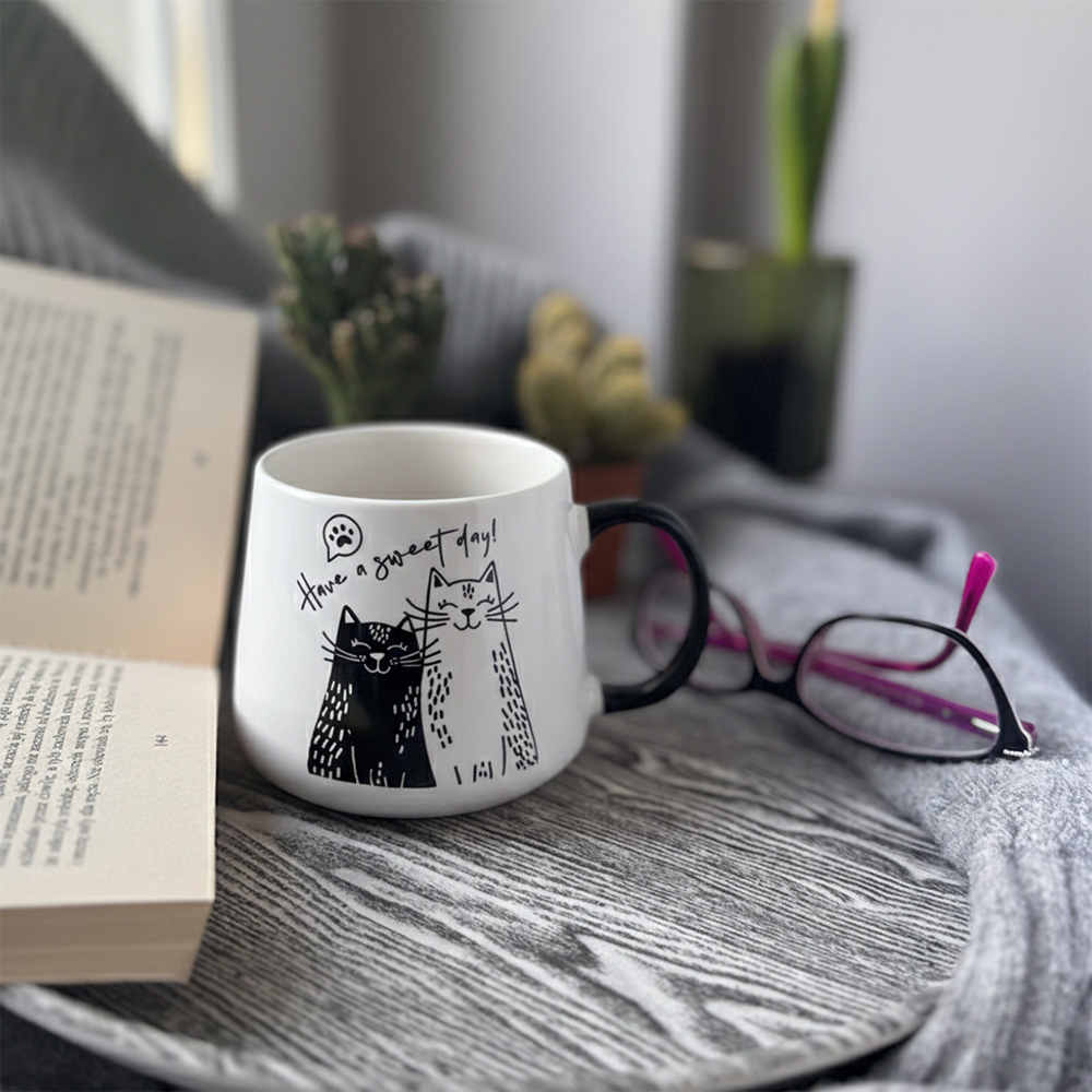 Duża pojemność 400ml sprawia, że kubek doskonale nadaje się do kawy, herbaty, kakao czy innych ulubionych napojów. Wygodny uchwyt zapewnia komfort użytkowania, a atrakcyjny design czyni go świetnym wyborem zarówno do domu, jak i do biura. Kubek CAT FRIENDS to również doskonały pomysł na prezent dla każdego fana kotów.