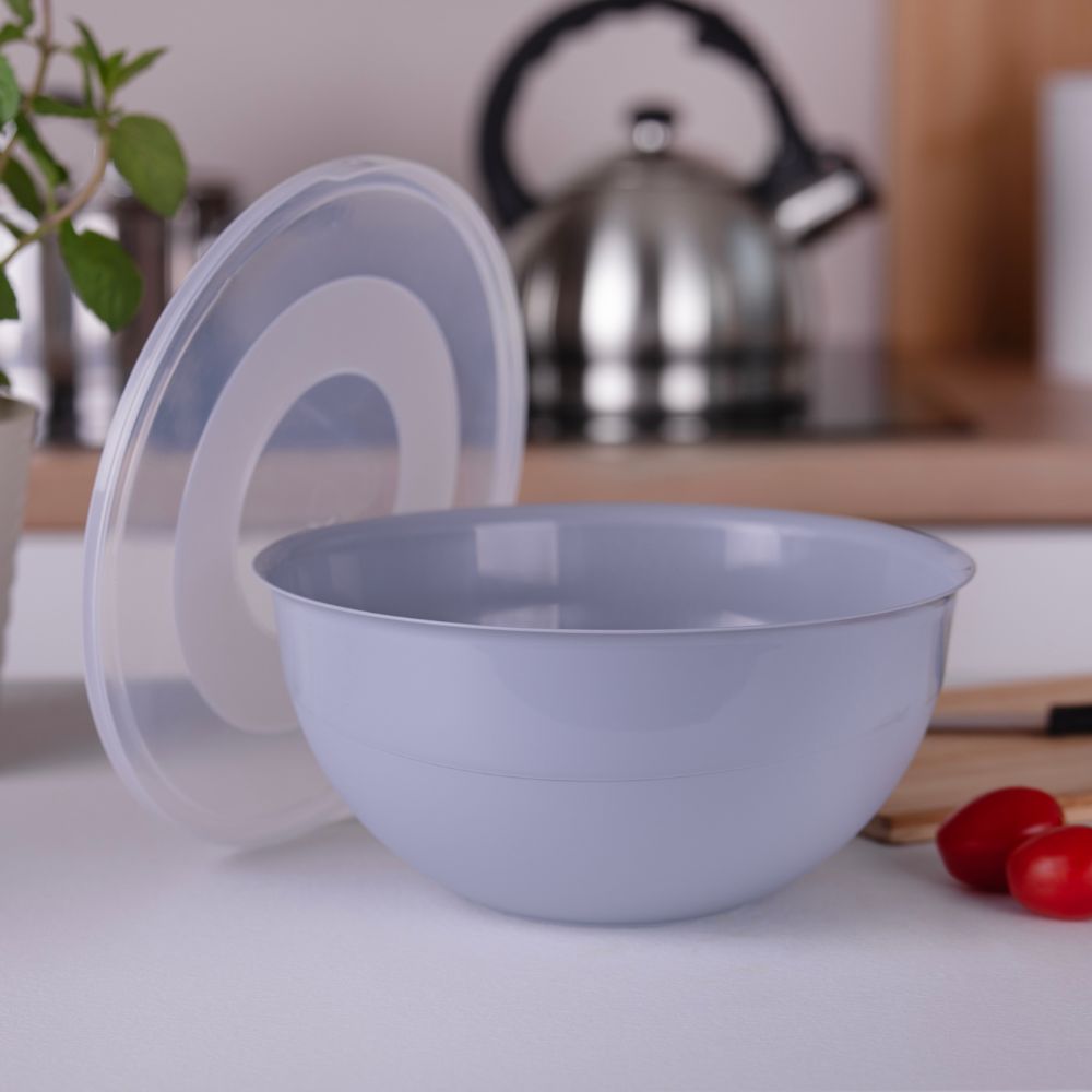 Miseczka o pojemności 3 litrów to niezastąpiony element w każdej kuchni! Wykonana z wysokiej jakości tworzywa sztucznego, jest lekka, trwała i łatwa w czyszczeniu. Dzięki praktycznej pokrywce przechowywana żywność dłużej pozostaje świeża. Świetnie nadaje się do przygotowywania sałatek, przechowywania owoców czy wyrabiania ciasta. Jej subtelny, popielaty kolor doskonale komponuje się z różnymi stylami wnętrz.
