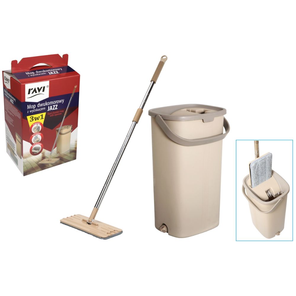Mop dwukomorowy JAZZ marki RAVI to praktyczne i wygodne rozwiązanie, które sprawia, że sprzątanie staje się szybkie i komfortowe. Wyposażony w funkcjonalny system dwóch komór oraz wygodny wyciskacz, umożliwia skuteczne oddzielanie czystej i brudnej wody – bez konieczności moczenia rąk.