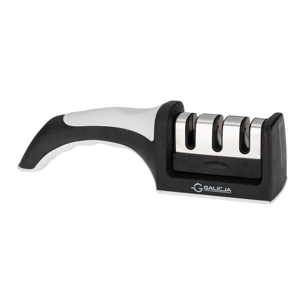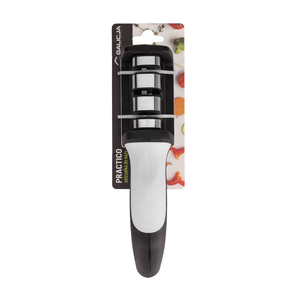 Ergonomiczny uchwyt zapewnia komfort i bezpieczeństwo użytkowania, a kompaktowy rozmiar sprawia, że ostrzałka zmieści się w każdej kuchennej szufladzie.
