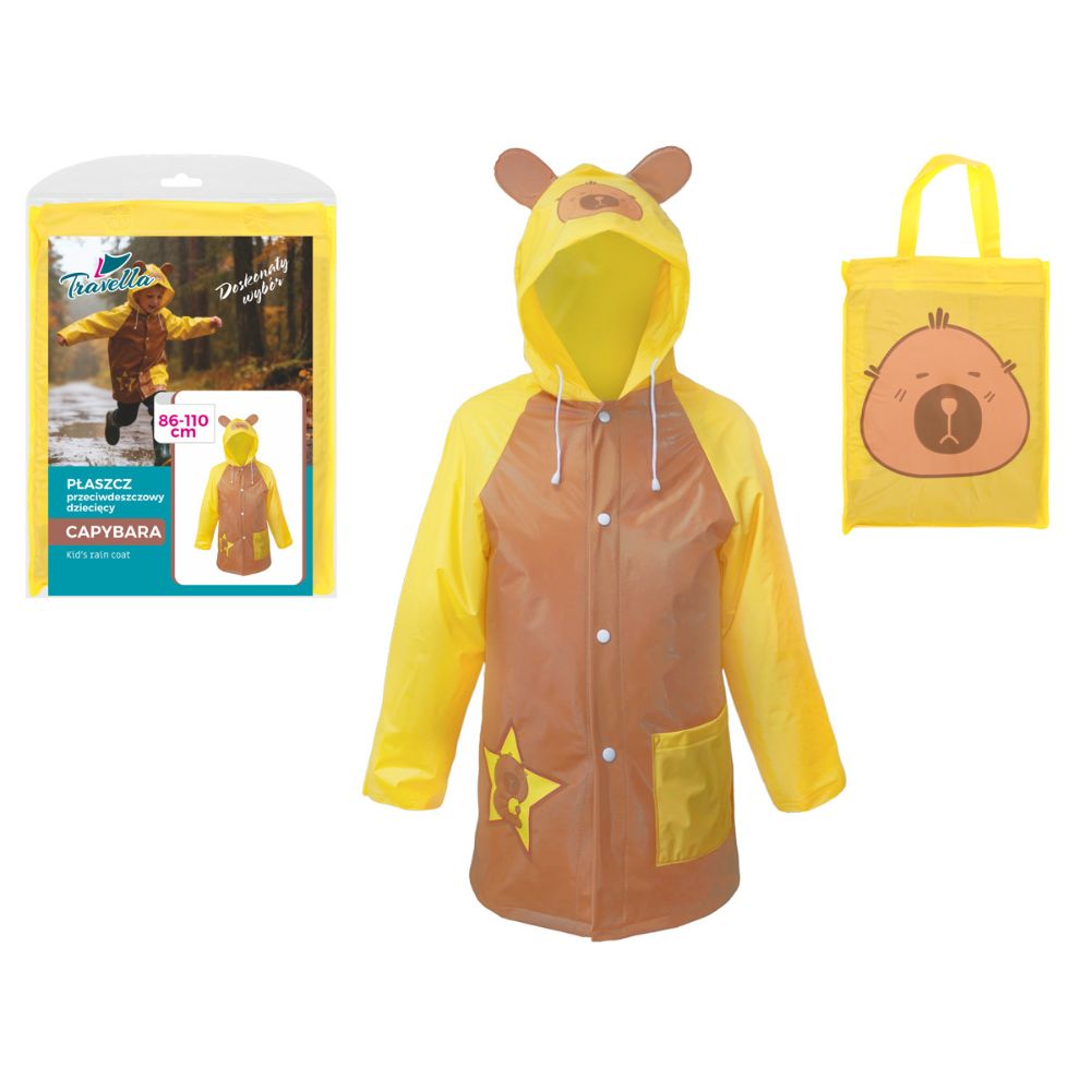 Uroczy i funkcjonalny płaszcz przeciwdeszczowy dla dzieci z motywem kapibary to idealne rozwiązanie na deszczowe dni. Kolorowy design z kapturem w kształcie zwierzątka sprawia, że każde wyjście na dwór staje się przyjemnością – nawet w czasie deszczu!