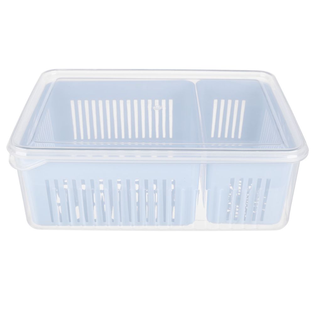 Pojemnik wykonany jest z wysokiej jakości tworzywa sztucznego PP, bezpiecznego do kontaktu z żywnością. Wkład z perforacją umożliwia odprowadzanie nadmiaru wilgoci, co pomaga dłużej zachować świeżość warzyw, owoców czy innych produktów. Transparentna pokrywa pozwala szybko sprawdzić zawartość bez konieczności otwierania pojemnika.