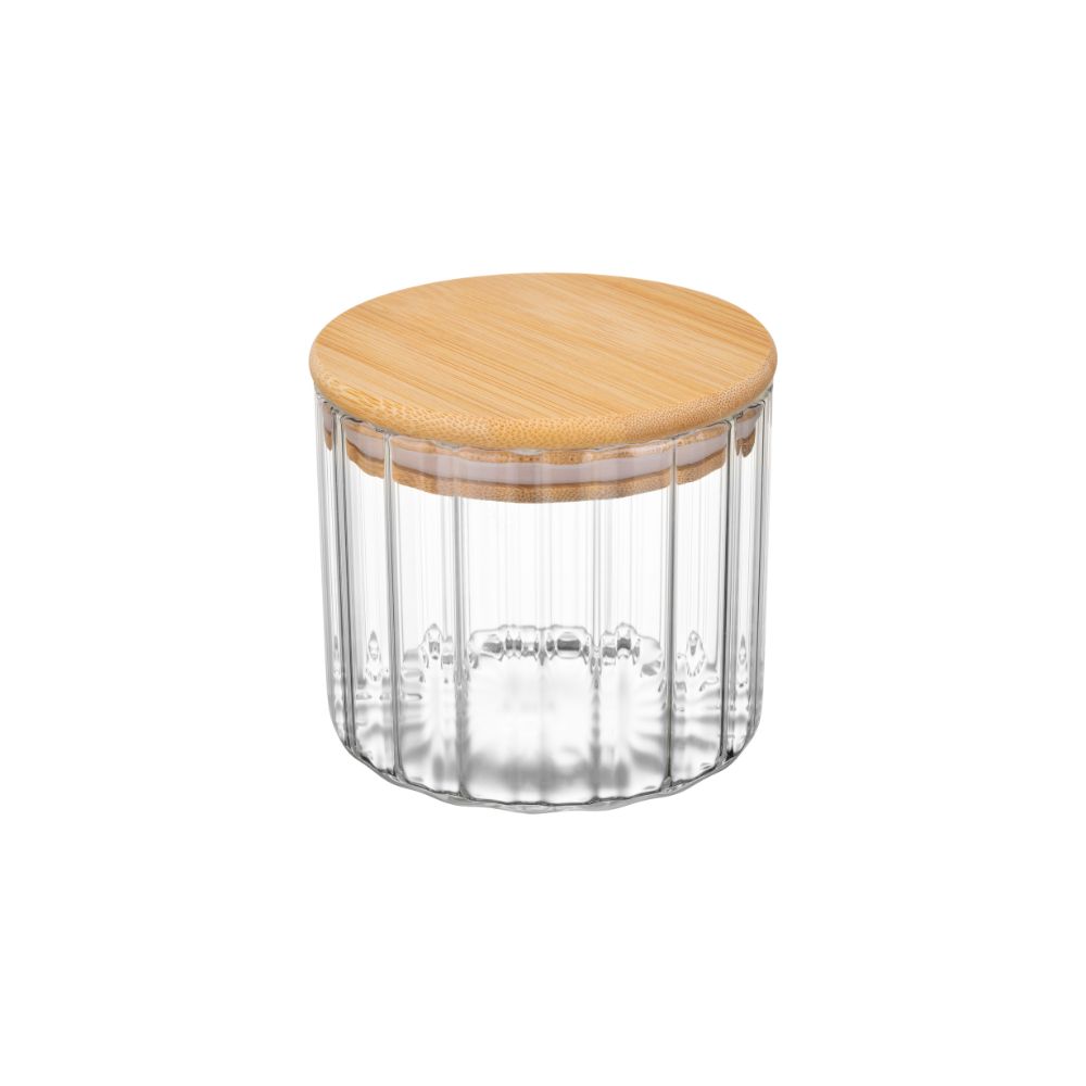 Pojemnik szklany MUSCAT 500ml to eleganckie i funkcjonalne rozwiązanie do przechowywania produktów spożywczych. Wykonany z wysokiej jakości szkła, zapewnia bezpieczne i higieniczne przechowywanie żywności, nie chłonąc zapachów ani smaków. Wyposażony w szczelną uszczelkę oraz bambusową pokrywę, doskonale chroni zawartość przed wilgocią i utratą świeżości. Naturalne wykończenie pokrywy idealnie komponuje się z nowoczesnymi oraz klasycznymi kuchniami. Pojemnik świetnie sprawdzi się do przechowywania makaronu, ryżu, kaszy, orzechów i innych produktów sypkich.