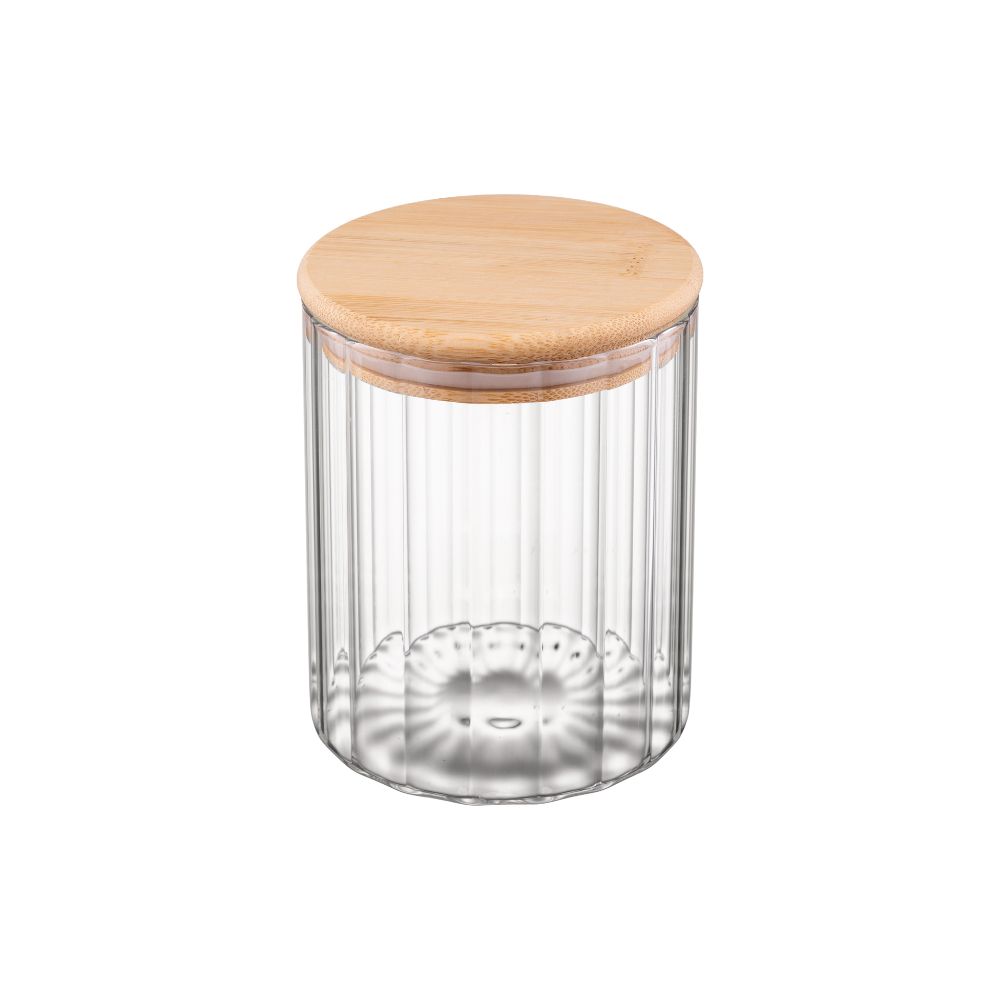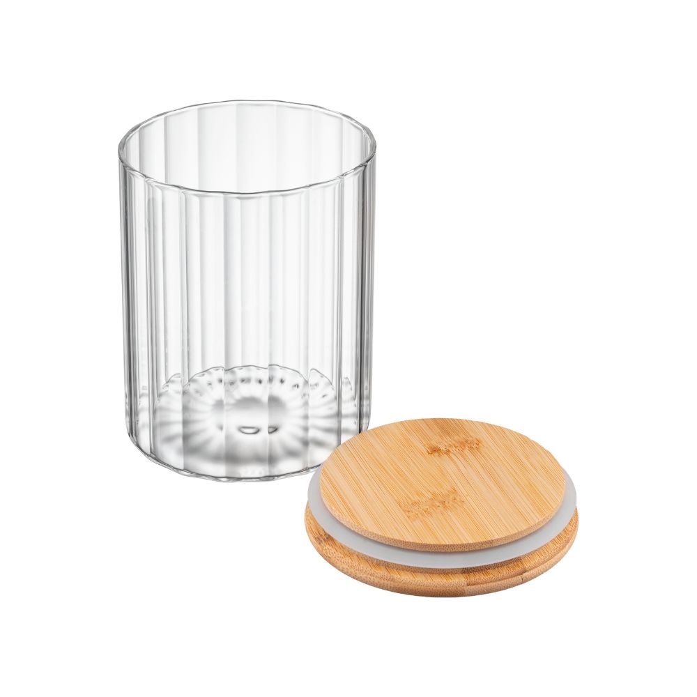 Pojemnik szklany MUSCAT 700ml to eleganckie i funkcjonalne rozwiązanie do przechowywania produktów spożywczych. Wykonany z wysokiej jakości szkła, zapewnia bezpieczne i higieniczne przechowywanie żywności, nie chłonąc zapachów ani smaków. Wyposażony w szczelną uszczelkę oraz bambusową pokrywę, doskonale chroni zawartość przed wilgocią i utratą świeżości. Naturalne wykończenie pokrywy idealnie komponuje się z nowoczesnymi oraz klasycznymi kuchniami. Pojemnik świetnie sprawdzi się do przechowywania makaronu, ryżu, kaszy, orzechów i innych produktów sypkich.