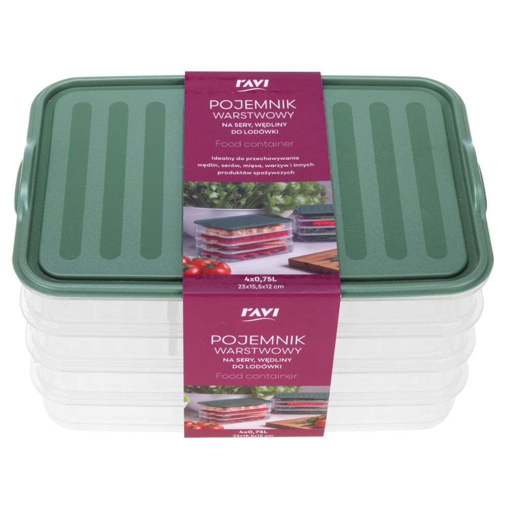 Praktyczny i estetyczny pojemnik warstwowy to idealne rozwiązanie do przechowywania serów, wędlin oraz innych produktów w lodówce. Dzięki konstrukcji piętrowej pozwala zaoszczędzić miejsce i utrzymać porządek.
