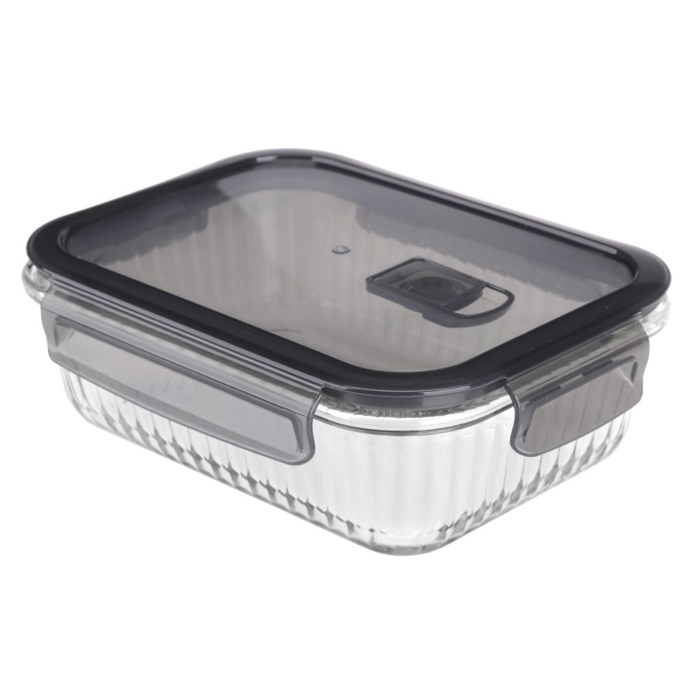 Naczynie posiada elegancką ryflowaną strukturę, która nie tylko podnosi walory estetyczne, ale również zapewnia lepszy chwyt podczas użytkowania. Prostokątny kształt ułatwia przechowywanie w lodówce, zamrażarce czy szafkach, a szkło jest odporne na wysokie i niskie temperatury.