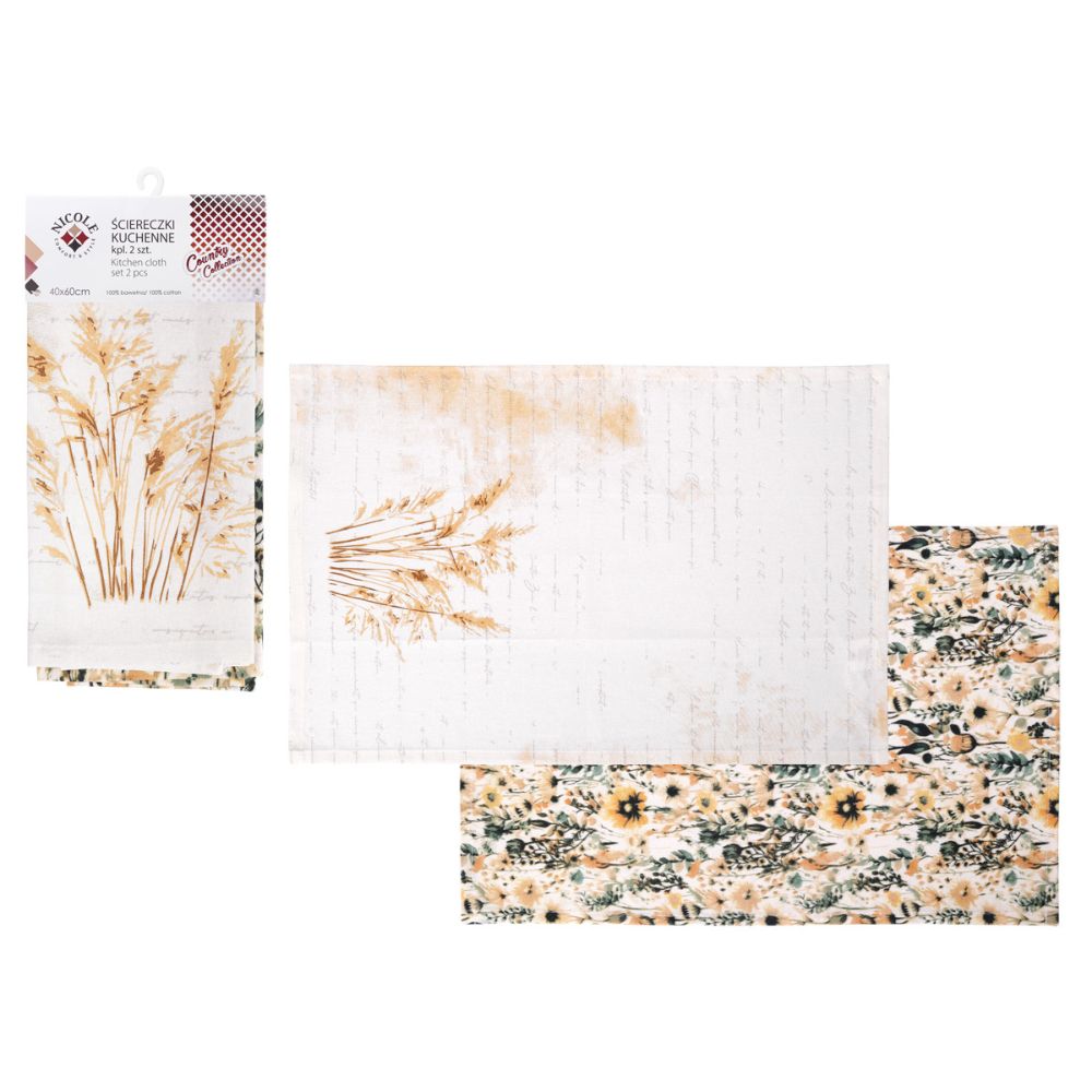 Zestaw 2 ściereczek kuchennych o wymiarach 40x60cm wykonanych w całości z wysokiej jakości bawełny. Ściereczki są chłonne, trwałe i przyjemne w dotyku, dzięki czemu świetnie sprawdzą się w codziennym użytkowaniu – do wycierania naczyń, polerowania szkła czy utrzymywania czystości w kuchni. Naturalny materiał zapewnia doskonałą chłonność i szybkie schnięcie, a klasyczny wygląd pasuje do każdego wnętrza.