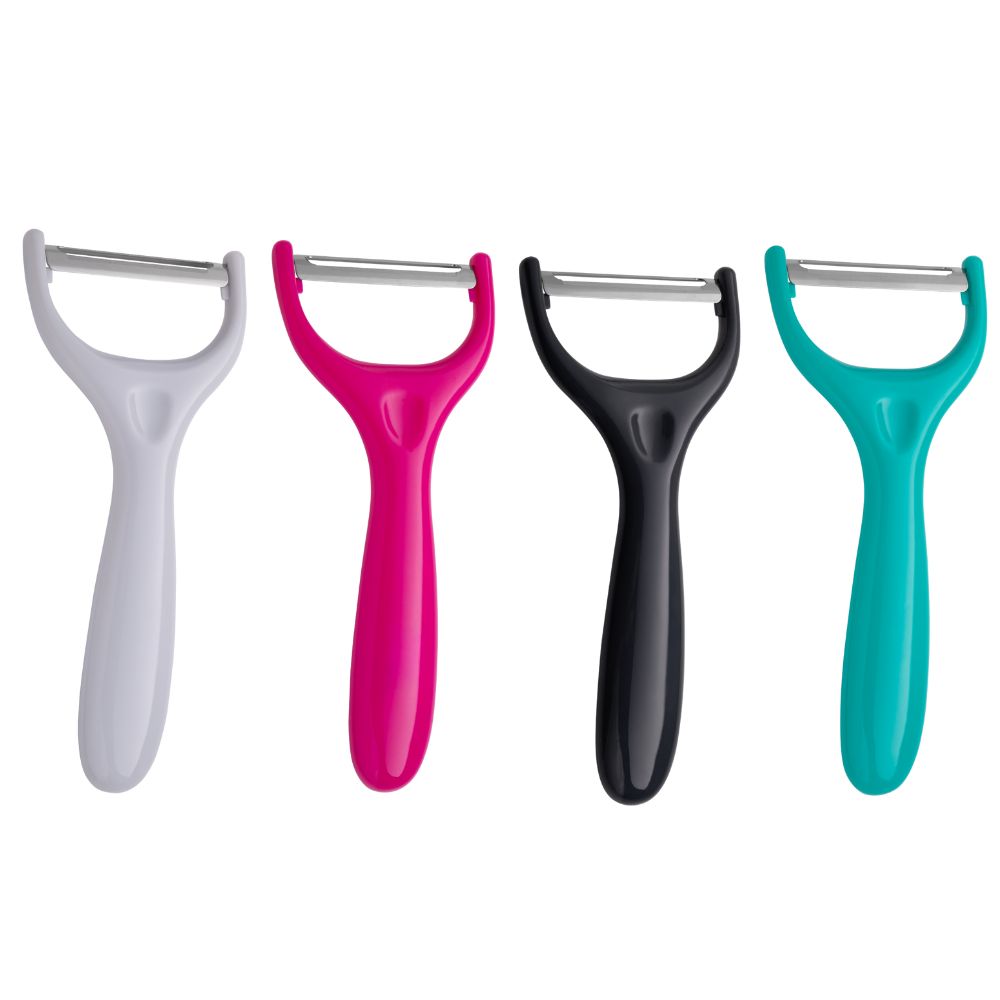 Ergonomiczna rączka z tworzywa sztucznego gwarantuje pewny i wygodny chwyt, ułatwiając precyzyjne obieranie warzyw i owoców. Skrobak nadaje się również do tworzenia dekoracyjnych wstążek z marchewek, cukinii czy innych twardych warzyw, co pozwala na efektowne podanie potraw.