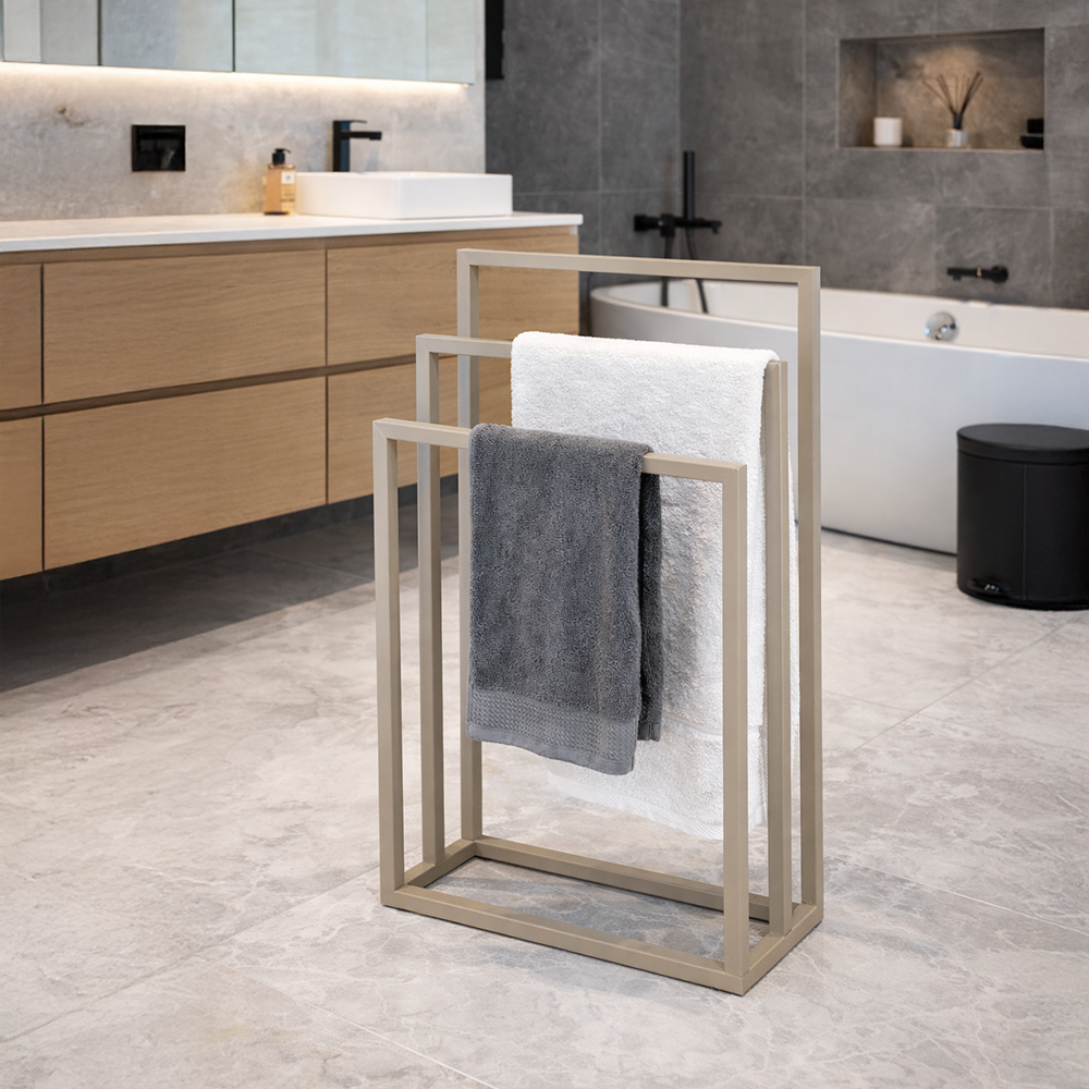 Stojak na ręczniki to praktyczny i estetyczny dodatek, który pomoże utrzymać porządek w łazience i doda jej eleganckiego charakteru.