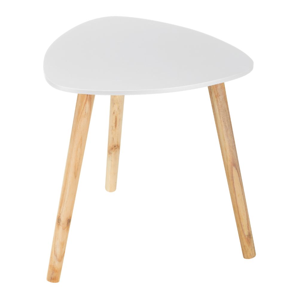 Poznaj Stolik Kawowy TRIO w wersji małej, idealny do mniejszych przestrzeni lub jako eleganckie uzupełnienie większego zestawu (np. w połączeniu ze stolikiem TRIO dużym). Biała kolorystyka i naturalne drewno wnoszą do wnętrza ciepło i nowoczesny styl.