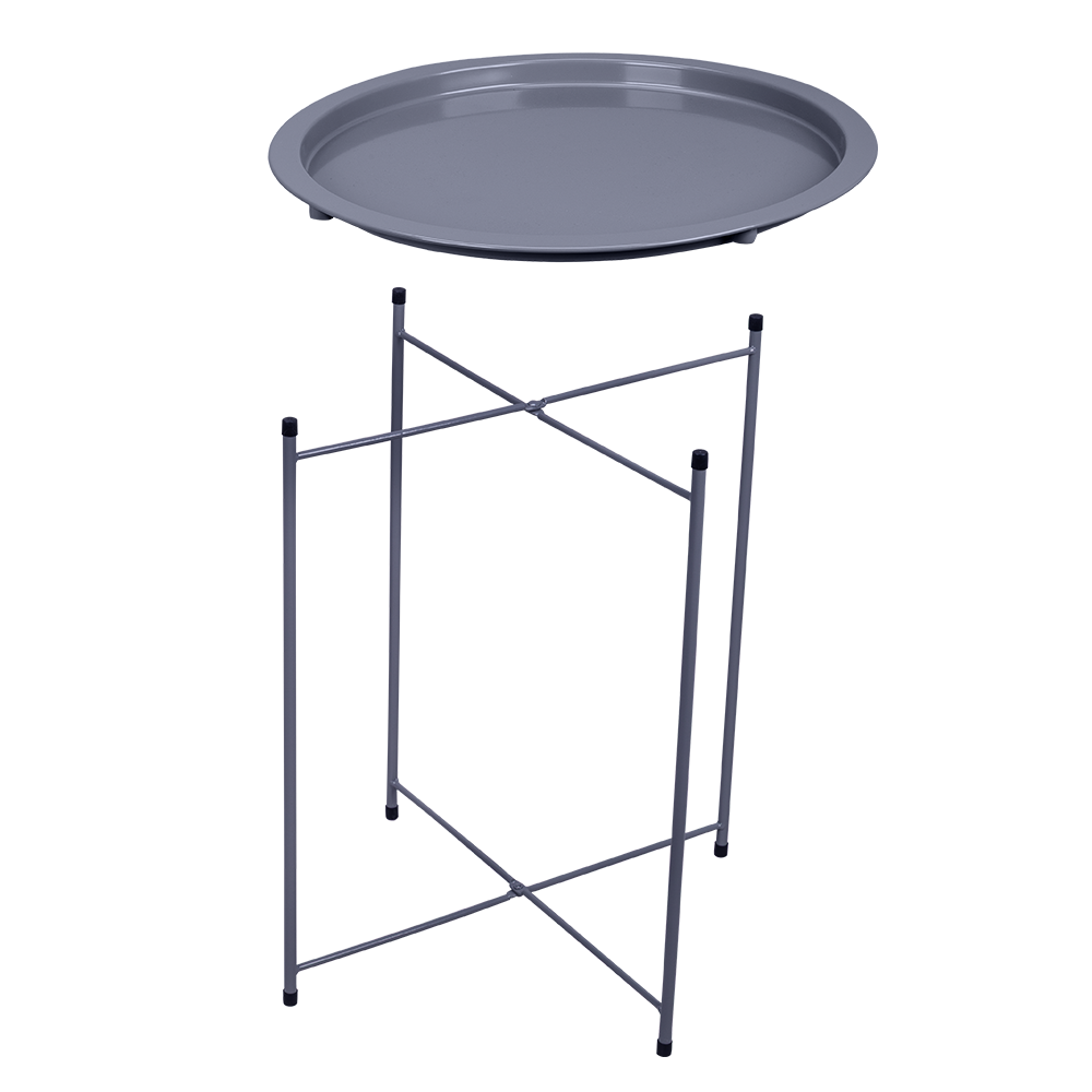 Praktyczny i stylowy stolik z tacą w uniwersalnym szarym kolorze to funkcjonalny dodatek do salonu, sypialni, balkonu czy tarasu. Lekka, składana konstrukcja umożliwia łatwe przenoszenie oraz wygodne przechowywanie, gdy stolik nie jest używany.