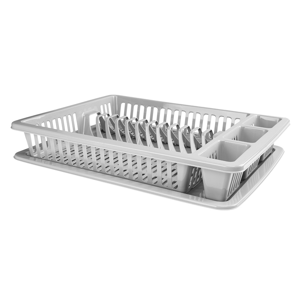Linia produktów wyposażenia kuchni MOLLY to funkcjonalne narzędzia, które są niezbędne podczas organizacji szafek, gotowania potraw i przygotowywania produktów spożywczych. Suszarka do naczyń MOLLY została wykonana w wysokiej jakości tworzywa sztucznego w kolorze szarym. Posiada dwie funkcjonalne przegrody na sztućce oraz podstawkę, która zbiera wodę. Jest dostępna w modnym kolorze i z pewnością dopasuje się do każdej kuchni. Odporna na uszkodzenia.