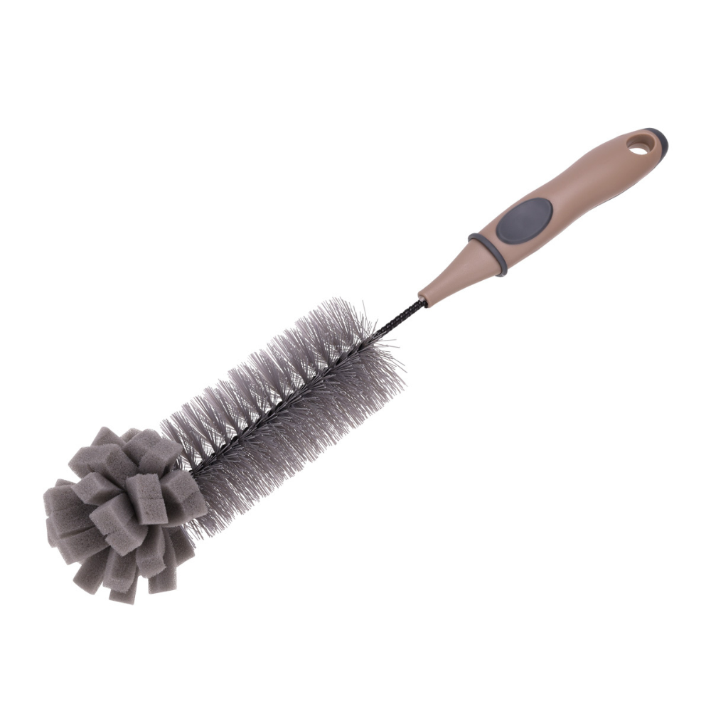 Praktyczna szczotka do butelek MOKKA została zaprojektowana z myślą o dokładnym czyszczeniu trudno dostępnych miejsc. Połączenie klasycznego włosia z końcówką gąbkową pozwala skutecznie usuwać zabrudzenia, jednocześnie nie rysując powierzchni.