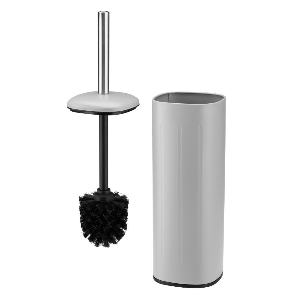 Szczotka WC NUBO w eleganckim, szarym kolorze to praktyczny i estetyczny element wyposażenia każdej łazienki. Wykonana ze stali malowanej proszkowo oraz trwałego tworzywa sztucznego, łączy nowoczesny design z wysoką funkcjonalnością. Wewnątrz znajduje się plastikowy pojemnik, który ułatwia utrzymanie higieny, a plastikowa podstawa skutecznie chroni podłogę przed zarysowaniami. Szczotka została wyposażona w wymienną końcówkę, co wydłuża jej żywotność i zapewnia czyste, komfortowe użytkowanie. Smukła forma sprawia, że doskonale pasuje do łazienek w każdym stylu.
