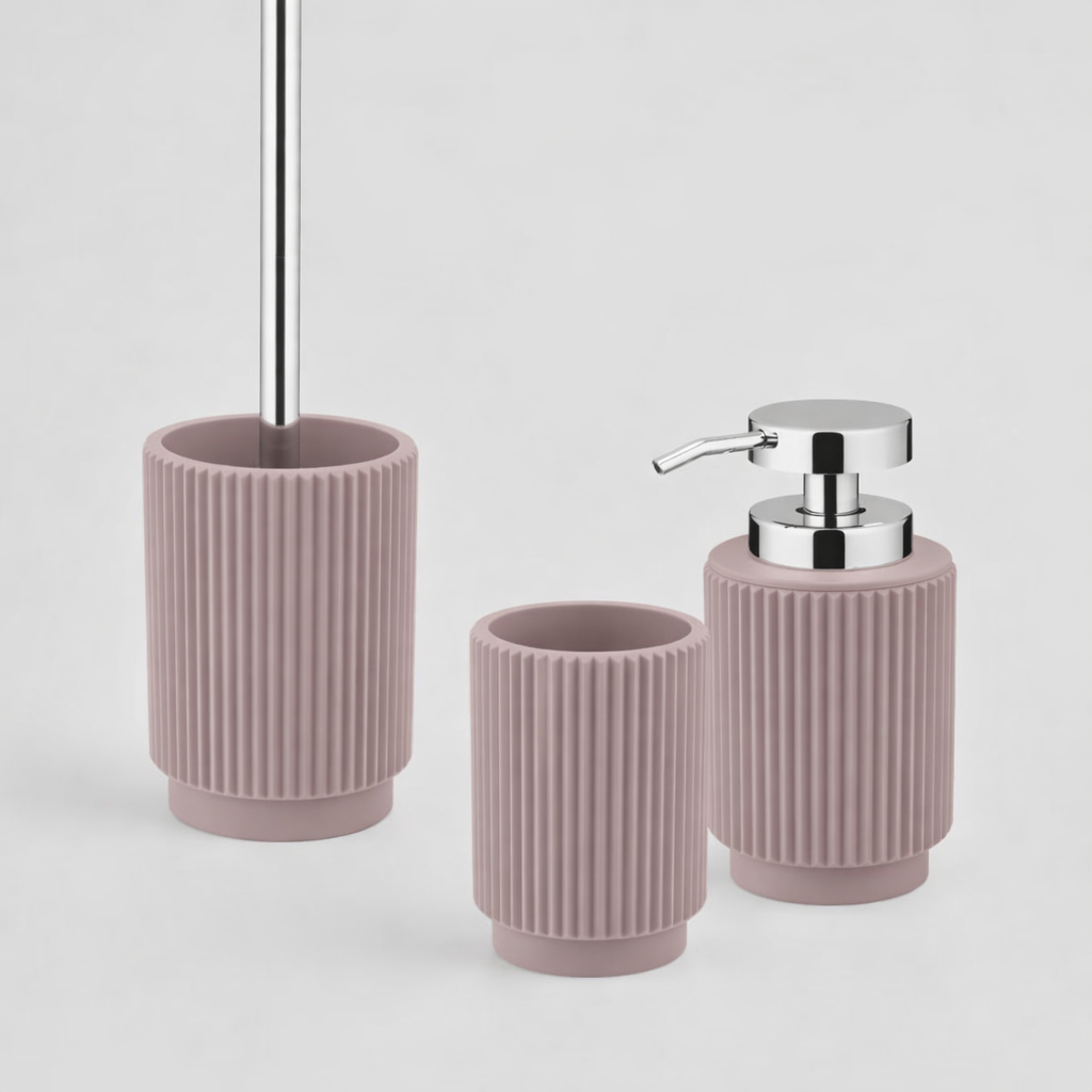 Nowoczesna szczotka WC RIBELLO w modnym kolorze beżowym to praktyczne i estetyczne wyposażenie każdej łazienki. Minimalistyczna forma oraz pionowe żłobienia nadają pojemnikowi elegancki wygląd i sprawiają, że produkt doskonale wpisuje się w nowoczesne i klasyczne aranżacje wnętrz.
