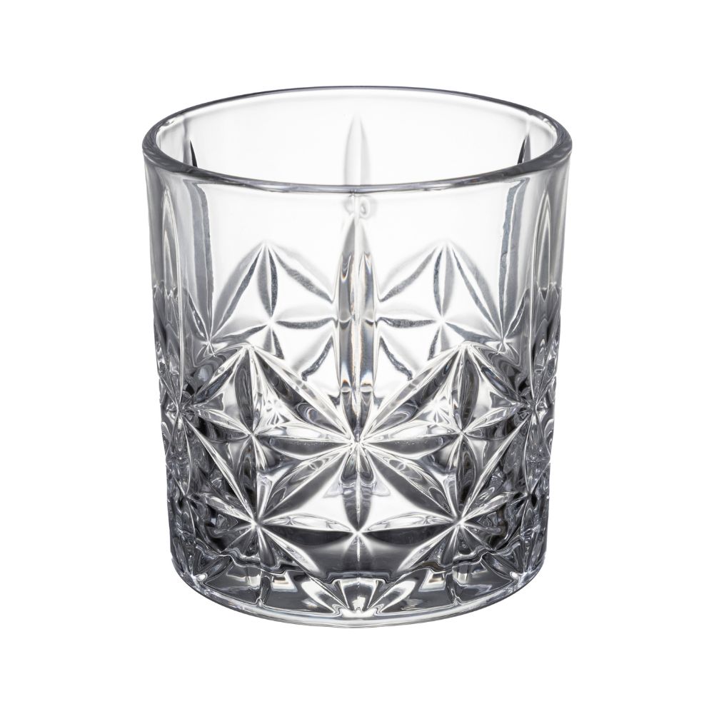 Elegancka szklanka CLEO o pojemności 330ml wyróżnia się efektownym, tłoczonym wzorem inspirowanym klasycznym szkłem kryształowym. Stylowe zdobienia pięknie odbijają światło, dzięki czemu szklanka doskonale prezentuje się zarówno na co dzień, jak i podczas wyjątkowych okazji.
