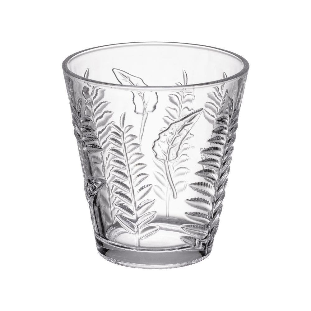 Stylowa szklanka HOLLY o pojemności 310ml wyróżnia się eleganckim, roślinnym wzorem tłoczonym w szkle. Jej subtelna dekoracja nadaje wyjątkowego charakteru, dzięki czemu doskonale sprawdzi się zarówno w codziennym użytkowaniu, jak i podczas spotkań przy stole.