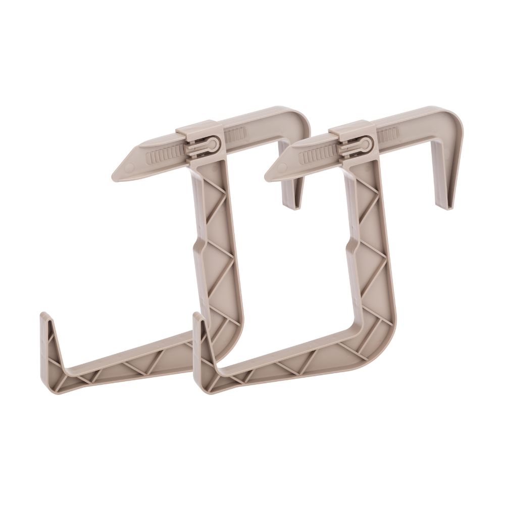 Dzięki praktycznej regulacji uchwyty można łatwo dopasować do różnych rodzajów balustrad i poręczy. Komplet dwóch wieszaków idealnie sprawdza się przy montażu skrzynek balkonowych o długości do 80cm.