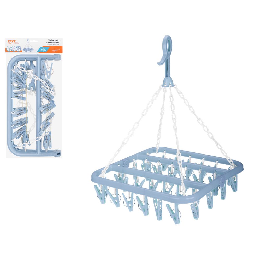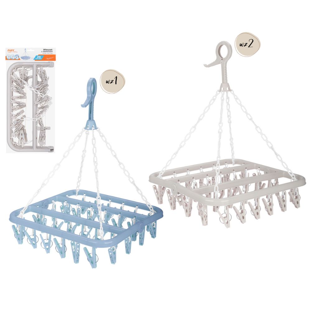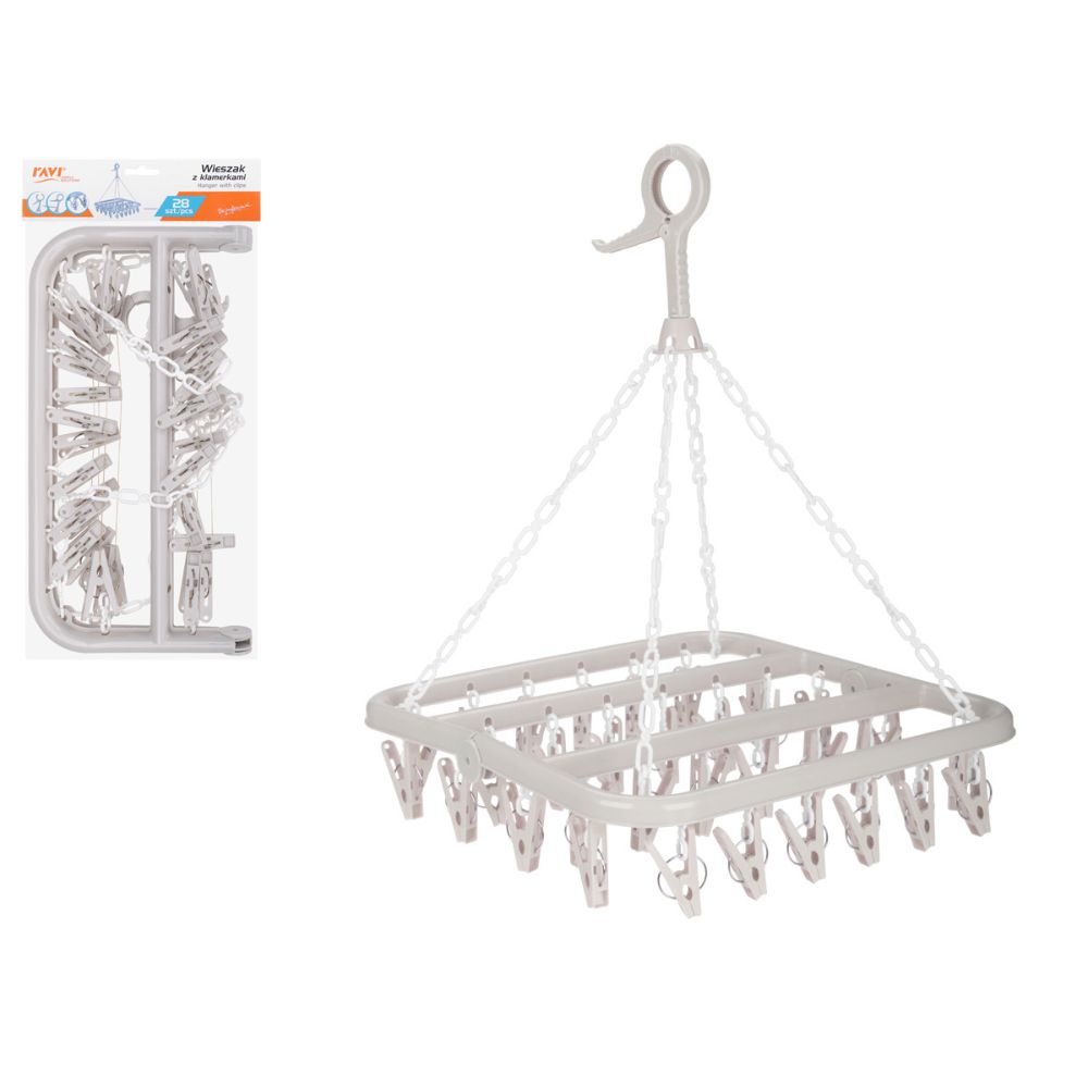 Praktyczny wieszak z klamerkami to wygodne rozwiązanie do suszenia bielizny, skarpet, drobnej odzieży oraz akcesoriów. Wyposażony w 28 solidnych klamerek, pozwala na jednoczesne rozwieszenie wielu elementów garderoby, oszczędzając miejsce na suszarce lub lince.