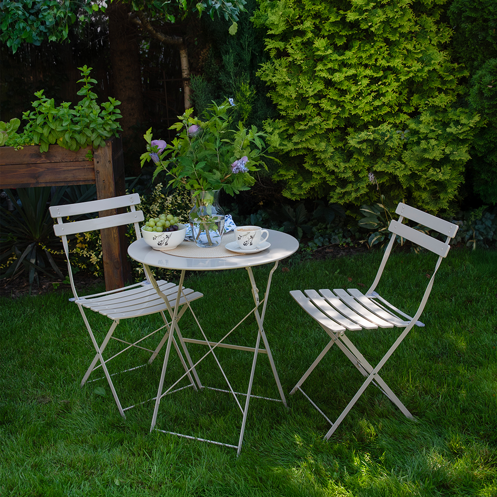 Stylowy i funkcjonalny zestaw mebli BISTRO 2+1 to idealne rozwiązanie do ogrodu, na taras, balkon lub patio. Klasyczna forma w połączeniu z eleganckim beżowym kolorem sprawia, że zestaw doskonale wpisuje się zarówno w nowoczesne, jak i bardziej tradycyjne aranżacje przestrzeni zewnętrznych.